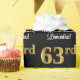 Den här sofistikerade, lyxiga och snyggt-födelsedagstecknet med papper design har ett stort ordnummer "63:e" som har ett imitation/faux-guld-liknande utseende, tillsammans med hälsning-födelsedagstecknet "Lycklig 63:e födelsedagen" och ett anpassade-namn i ett skript-stil-teckensnitt. Den har också en bakgrund med svart färgad. Snyggt som är papper som denna kan vara ett roligt sätt att fylla på en födelsedagspresent eller gåva som ges till någon som firar sin sextiotredje födelsedag. [~Z0000515]
