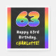 Den pappra napkin-designen för en livfull och spännande födelsedag har nummer 63 med ett dynamiskt regnbågsspektrum som inspirerat mönster, tillsammans med meddelandet Lycklig 63:e födelsedagen, och en personlig mottagare namn. Glatta pappra servetter som dessa kan användas när man hyr en party för någon i firande under deras sextiotredje födelsedag. [~Z0000629]