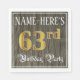 Den här pappra napkindesignen i finare och den lyxaktiga födelsedagsdagen har ett anpassade namn och meddelandet "63:e Födelsedagsfesten". Det stora antalet "63:e" har en imitation/faux-guld-inspirerad färgning mönster, ord "Födelsedagsfest" är i opulent text med skript-stil, och bakgrunden har en imitation/faux-vedkorninspirerad mönster. Ornate, elegant pappra blöjor av det här slaget kan användas vid en födelsedagsfest som hålls för att fira någons sextiotredje födelsedag. [~Z0000566]