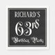 This fancy and elegant birthday-themed paper napkin design features a customizable name and the message “63rd Birthday Party”. The large number “63rd” and the words “Birthday Party” are in opulent script-style text, and the background is colored black by default (although it can be customized). Opulent, ornate paper napkins like this might be useful to have at a birthday celebration/party being held to honor somebody’s 63rd birthday. [~Z0000563]