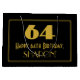 Vintagen stil 1920s-1930-talets framträdande inspirerade presentsäcksdesign för födelsedagspressar har ett stort konsdeco-utseende med inspirerat nummer "64", meddelandet "Lycklig 64:e födelsedag", ett eget namn och ett gräns mönster som består av tunt linjer. Bakgrunden är svart på färgad. En presentpåse som denna kan användas när man slår in gåvor som ges till någon i firande på deras 64-årsdag. [~Z0000501]