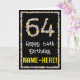 På framsidan av den här roligten har naturinspirerad födelsedag, hälsningskortet, texten "64:e födelsedagen i Lycklig" och anpassadet som får namn. Det stora antalet "64" och gräns på framsidan består båda av blomsymboler. Insidan har ett anpassat hälsning-födelsedagsmeddelande, eller så kan det kanske rensas och lämnas tomt om ett meddelande ska skrivas för hand i stället. Ett sådant här hälsningskort på personligens födelsedag kan skickas för att fira någons sextiofjärde födelsedag. [~Z0000648]