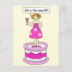 En glamorös tecknad dam som står på en stor tårta och bär en rosa klänning utan band. Hon håller en cocktail i ena handen och säger "64 är de nya 44".