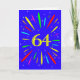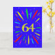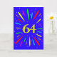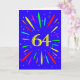 Ett explosivt 64-årskort! Vilket underbart sätt att skicka födelsedagshälsningar. Numret 64 i ljus gult med en explosion av ljusa färger stjärnor.