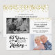 Bjud in dina gäster med denna 65-årsjubileumsinbjudan i svart och guld med guldglitterkonfetti och med retrotypografi som säger 65 YEARS IN THE MAKING och integrerar deras bröllopsår som en del av designen. Inkludera två foton (kanske då- och nu-bilder för en rolig inbjudan med en glimt från det förflutna). Festinbjudans detaljer finns på baksidan. FOTOTIPS: För snabbaste/bästa resultat, välj ett foto med motivet i mitten och/eller förbeskära det till en liknande form som visas INNAN du laddar upp. Kontakta designern via Zazzle Chat eller makeitaboutyoustore@gmail.com om du vill att denna design ska ändras, på en annan produkt eller om du vill ha samordnade artiklar.