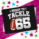 Denna fotbollsfödelsedagsdesign är perfekt för en 65-årsdag fotbollstema födelsedagsfest för att fira att man fyller 65 år! Innehåller 'Redo att tackla 65' 65-årsdag fotbollscitat med fotbollsgrafik. Perfekt för alla som älskar fotboll och som fyller 65 år!