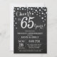 65-års bröllopsdag Inbjudan med Kritskriftsbräda Svart och Silver. Sextiofem års bröllopsdag. Kritskriftsbräda Svart och Silver Glitter Diamant Bakgrund. Silverkonfetti. Födelsedagsfirande för vuxna. Födelsedagsfest för kvinna eller man. För ytterligare anpassning, klicka på "Anpassa"-knappen och använd vårt designverktyg för att ändra denna mall.