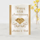 Personlig 65-årsjubileumskort för föräldrar med deras namn och datum för bröllop och/eller årsdag och ditt jubileumsmeddelande till dina föräldrar på kortets inre vänstra och högra sida. RING Designer Linda: 239-949-9090 för HJÄLP och ÄNDRINGAR av designen, år, färger, ädelstenar (om tillgängliga) och ditt val av tusentals Zazzle-personliga 65-årsjubileumsfesttillbehör, presenter och dekorationer.