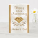 Personlig 65-årsjubileumskort för föräldrar med deras namn och datum för bröllop och/eller årsdag och ditt jubileumsmeddelande till dina föräldrar på kortets vänstra och högra inre sida. RING Designer Linda: 239-949-9090 för HJÄLP och ÄNDRINGAR av designen, år, färger, ädelstenar (om tillgängliga) och ditt val av Tusentals Zazzle-personliga 65-årsjubileumsfesttillbehör, presenter och dekorationer.