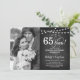 65-års bröllopsjubileum inbjudan med foto. Elegant design i svart och vitt. Funktioner kritskrifttavla mönster, script-teckensnitt och älvsträngljus. Skål för 65 år! Kan anpassas till valfritt år. Meddela mig om du behöver ytterligare anpassning.