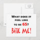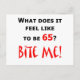 Hur känns det att vara 65? Bita mig! Humoriserad design för 65-åringen som inte är lycklig om att vända 65 och varningstecken för andra. Gör en underbar 65e födelsedagspresent.