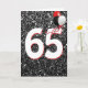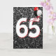 Röda, vita och svarta ballonger på svart glitter-bakgrund för 65ens födelsedag.