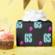 Nummer 65 neontecken på svart bakgrund med rosa ballong. Bakgrunden till färg kan ändras.