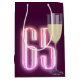 Rosa 65 nybörjare på maronbakgrunden med ett glas vin för 65e födelsedag. Maronbakgrunden färg kan ändras.