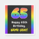 Den glatta och livfulla pappra napkin-designen för födelsedagen har nummer "65" med ett färgstarkt regnbågsspektrum som inspirerar gradienten mönster, tillsammans med meddelandet "Lycklig 65e Birthday," och en anpassningsbar som tar emot namn. Födelsedag som pappra blöjor som denna kan vara roligt till använda vid en party som hålls för någon som firar sin sextiofemte födelsedag. [~Z0000629]