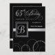 Contemporary 65e Birthday Firation Invitations - Black with silver script and monogram. Anpassa namn, datum och information för detta speciellare och ärliga tillfälle. © Teri Francis. Matchande porto och tack för dina kort.