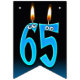 födelsedagsljus med ögonbollar på svart och akvatisk bakgrund för 65ens födelsedag