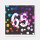 Neon regnbåge punkt mönster på svart bakgrund för 65ens födelsedagsfest. Ålder kan redigeras. Den svarta bakgrunden färg kan ändras.