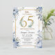 65th Birthday Party Elegant Dusty Blue Floral Inbjudningar