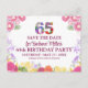 Soft watercolor blooms surround a statement 65 for a warm, feminine look. Share the happy news and gather everyone to celebrate sixty five years of love. Enjoy!