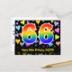 Den främre delen av denna färgglada, spännande och kärleksfulla födelsedagstema postkortsdesign har en stor siffra "66" med ett regnbågsspektrum-gradering inspirerat mönster, tillsammans med meddelandet "Grattis på 66-årsdagen," och ett redigerbart mottagarnamn. Framsidan har dessutom ett färgglatt och livfullt kärleksfullt hjärtformigt bakgrundsmönster. Baksidan har ett anpassat födelsedagsmeddelande, eller skulle kanske kunna tömmas och lämnas tomt om ett meddelande ska skrivas för hand istället. Ett anpassningsbart födelsedagskort som detta kan vara ett roligt sätt att fira någon på deras sextio-årsdag. Postkort som detta kan också användas för att inbjuda gäster till en födelsedagsfest som håll