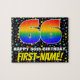 Denna glatta och öga-infångande födelsedagstäckande pussel har ett stort nummer "66" med ett multifärgat regnbågsspektrum som inspirerar gradienten mönster, tillsammans med meddelandet "66:e BIRTHDAY, LYCKLIG" och anpassadet som tar emot namn. Bakgrunden har fet, flerfärgad stjärna i mönster. Ett sådant här uppsvällt, anpassat födelsedagspressel kan vara ett roligt för att leverera önskemål till någon som firar sin sextiosjätte födelsedag. [~Z0000607]