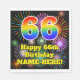 Den här roligten och den spännande pappra napkin-designen har ett stort nummer "66" med en färgstark regnbågsspektrumövertoning som inspirerade mönster. Det innehåller också budskapet "Lycklig 66:e födelsedag" och en personlig namn. Bakgrunden är ett spännande och färgstarkt mönster som inspirerats av att det ser ut som att bränna berömda fyrverkerier. Färgfull födelsedag med pappra blöjor av det här slaget kan användas vid party i firande på någons 66-årsdag. [~Z0000574]