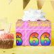 Den här snygga och uppseendeväckande pappra designen med 66 dagars födelsetal har ett stort nummer "66" med en färgstark mönster inspirerad av ett regnbågsspektrum. Det innehåller också budskapet "66:e födelsedagen i Lycklig", följt av ett anpassade namn. Bakgrunden har en rosa i mörk och ett mönster i ljusa rosa rand som innehåller levande hjärtformer i rosa. Födelsedagematoden papper som denna kan användas när en gåva eller present i firande på någons sextiosjätte födelsedag är ge. [~Z0000415]