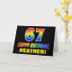 Framsidan av detta roliga, färgstarka och roligtens födelsemodeller har ett stort nummer "67" och meddelandet "GRATTIS PÅ FÖDELSEDAGEN,", som båda har en regnbågsspektrumövertoning som inspirerade mönster-färgning, tillsammans med en fet mottagare av anpassade i gult namn. Framsidan har också en minimal, enkel, svart färgad. Insidan innehåller ett anpassat hälsning-födelsedagsmeddelande eller kan kanske tas bort och lämnas tomt om ett meddelande ska skrivas för hand i stället. Ett sådant här muntert födelsedagskort i anpassadet kan vara ett roligt sätt att skicka ett meddelande om att fira någons sextiosjunde födelsedag. [~Z0000472]