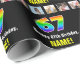 Den här pappra designen med fet stil och roligt har ett stort nummer "67" med ett dynamiskt multifärgat regnbågsspektrum som inspirerade gradienten mönster, plus meddelandet "67:e födelsedagen i Lycklig" och en anpassningsbar mottagare i namn. Det finns också några foton som kan vara personlig, kanske med foton av mottagaren, mottagarens familj och vänner och/eller mottagaren/avsändarna av presenten. Att packa pappert som detta kan vara ett roligt för att packa en födelsedagspresent eller gåva till någon som firar sin sextiosjunde födelsedag. (Photography © Storytree Studios, Stanford, CA.) [~Z0000670]