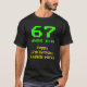Det här fåniget och den här skjortan har meddelandet "67 ÅRS GAMLA!", födelsedagsmeddelandet hälsning "Lycklig 67:e födelsedag" och personlig namn. I de övre åldersgränserna och i texten finns ett nonsens, pixelerat, grönt, 8-bitars grafik stil som ser inspirerad ut av det som spelas upp i datorspel och videospel i vintage. Det nedre budskapet från hälsning har ett gäckande, gult och gammaldags digitalt datorsystem som inspirerats av att se ut. Sådana skepp kan bäras av gästerna på en födelsedagsfest som hålls i firande på 67-årsdagen av någon som verkligen gillar gamla videospel eller vintagar. [~Z0000455]