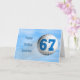 Ett underbart roligt kort för golfer eller golf tillfälle. En golf boll som flyger genom luft med 67 skrivna på den.