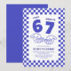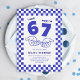 Fira att fylla sju med en av de största virala trenderna som barn älskar! Denna roliga 67-meme-inspirerade barnkalasinbjudan har en bakgrund i djupblå och vita rutor, de ikoniska ”67”-meme-händerna och det lekfulla talesättet ”Jag var 6, nu är jag 7.”