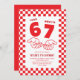 Celebrate turning seven with one of the biggest viral trends kids love! This fun 67 meme–inspired kids birthday party invitation features a bold red and white checkered background, the iconic “67” meme hands, and the playful saying “I was 6, now I’m 7.”
