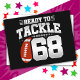 Denna fotbollsfödelsedagsdesign är perfekt för en 68-årsdag fotbollstema födelsedagsfest för att fira att man fyller 68 år! Har 'Redo att tackla 68' 68-årsdag fotbollscitat med fotbollsgrafik. Perfekt för alla som älskar fotboll och som fyller 68 år!