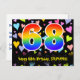 Framsidan av denna spännande, roliga och kärleksfulla födelsedagstema postkortsdesign har en stor siffra "68" med ett regnbågsspektrum-gradering inspirerat mönster, tillsammans med meddelandet "Grattis på 68-årsdagen," och ett anpassningsbart mottagarnamn. Framsidan har dessutom en färgrik och livfull bakgrund med ett mönster av kärleksfulla hjärtan. Baksidan har ett redigerbart födelsedagsmeddelande, eller kan rensas och lämnas tomt om ett meddelande ska skrivas för hand istället. Ett personligt födelsedagskort som detta kan vara ett roligt sätt att skicka ett meddelande för att fira någon som fyller sextioåtta år. Postkort som detta kan också användas för att bjuda in gäster till en födelsedagsfest