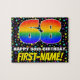 Den här trevliga och spännande pusselpusslet med födelsedag har ett stort nummer "68" med ett multifärgat regnbågsspektrum som inspirerar gradienten mönster. Det innehåller också meddelandet "LYCKLIG 68:e BIRTHDAY," och en redigerbar mottagare av namn. Bakgrunden har en roligt med flera färgade mönster med stjärnformer av olika storlek. Ett glatt, anpassat födelsedagspressel som detta kan användas för att bekräfta någons sextioåttonde födelsedag. [~Z0000607]