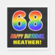 Den här roliga, roligt- och färgfulla pappra napkindesignen har ett stort nummer "68" och meddelandet "GRATTIS PÅ FÖDELSEDAGEN,", båda färgader med en regnbågsspektrumövertoning som inspirerade mönster, tillsammans med en modig mottagare av anpassade i gult namn. Bakgrunden är svart på färgad. Roligt, anpassade pappra blöjor som denna kan användas vid en födelsedagsfest som hålls för att fira någons sextioåttonde födelsedag. [~Z0000476]