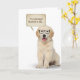 Cute golden hämmare valp med glasögon på vitt med tal bubbla i 68 år humor. Födelsedag kan redigeras.