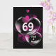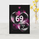 Rosa hjärtan och vita halvgenomskinliga hjärtformade bubblor under 69 år på svart bakgrund. Texten kan redigeras för valfritt bröllop-år firande. Namn kan ändras. Den svarta bakgrunden färg kan ändras.