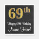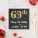 Den här lyxiga, sofistikerade och elegantens födelsedag med den pappra napkindesignen har ett stort ordnummer "69:e" med faux/imitation guld-liknande gradient mönster, utöver födelsedagstecknet "Lycklig 69:e födelsedagen" och ett anpassat namn i ett skript-stil-teckensnitt. Bakgrunden är svart på färgad. Pappra servetter av detta slag kan användas när man firar någons sextionionde födelsedag. [~Z0000516]