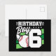 6-årig baseball-festtema 6-årsdag pojke vykort