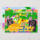 Bjud in alla dina vänner till din coola dinosaurie-födelsedagsfest med dessa färgglada, anpassningsbara födelsedagsinbjudningar för 6-årsdag! En cool liten tecknad dinosaurie Diplodocus DJ med solglasögon spelar musik på en groovy dinosaurie-fest på en tropisk ö med palmer och en stor gul sol med färgstjärnor och musiknoter som kommer ut ur högtalarna och anpassningsbar text: "Dittnamn" fyller 6, det är en Dinosaurie-fest och Du är inbjuden! På baksidan en cool dinosaurie-fest med dinosaurier lila T-Rex, orange Diplodocus, Grön Triceratops och färgstjärnor och ballonger i ett förhistoriskt landskap med träd, berg och vulkan med stjärnor och följande anpassningsbara text: Evenemangsdatum, Festtid, Festadress och R.S.V.P. till och Telefonnummer. Denna fantastiska färgglada dinosaurie-fest inbjudan är helt anpassningsbar, lägg till och anpassa med dina texter och