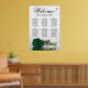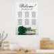 Denna vackra sittplatskarta för bröllop har sex bord som rymmer 10 gäster vardera, totalt 60 gäster. Kartan har en romantisk design med en ensam långstjälkig djup smaragdgrön ros som vilar på sidan och speglas i en lugn vattenyta. Kartans titel, skriven med elegant kalligrafi, välkomnar gästerna med "Välkommen! Hitta ert bord", samtidigt som det finns tillräckligt med utrymme längst ner för parets namn och bröllopsdatum. Denna sittplatskarta är ett underbart och praktiskt sätt att hälsa gästerna välkomna och hjälpa dem att hitta sina platser vid mottagningen, med en atmosfär av charm och sofistikation.