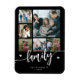 Elegant modern family handwritten calligraphy script with six custom photos black and white keepsake photo magnet template. ++++++++++++ Please note that the background color is changeable. You can replace the black with any other color after selecting CUSTOMIZE option.