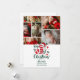 Gratulera till din lilla julafton med den här glatta designen som har en godisformat nummer ett, festive Santa hat, röda fotavtryck från baby och lekfulla, grå accents. Den charmerande blandningen av skript och fet grönt ger en mysigt, glad fingervisning till ditt nyckelord. Anpassa till baby namn och födelsedetaljer för ett verkligt minnesvärt biet.