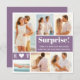 Alla kommer att älska att se dina förlovningsfoton. Detta 6-foto kollage förlovningskort ger dig en bra möjlighet att visa upp dem. De två dammiga blå rutorna innehåller din text. All vit text kan redigeras för att skapa din unika vinkel. Jag lade till en lekfull Överraskning! Sedan två rader text i den stora fyrkanten i den mindre fyrkanten infogade jag era monogram åtskilda av ett hjärta.