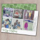 FRONT DESIGN: Ett kollage med sex foton i ett enkelt rutnät för att markera många bilder från det gångna året. Fotorutnätet är av från mitten med ett tunt gräns som omger fotona. Ett modernt sätt att söka efter ett helgdag-fotokort med avokado-gröntens accents och "god jul" i ett stort trendig-skriptteckensnitt. Bakgrunden är vit. BAKKONSTRUKTION: Bakgrundsdesignen innehåller ett block mönster i skuggor av grönt. Du kan ändra färg i det avancerade designområdet.
