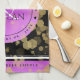 Fira 6e, 33:e, 47:e eller 48:e ametystdagen bröllop med den här snyggt handduken! Svart elegant med guld-besprutade sexkantiga konfetti på lila- och bakgrunder tillför ett minnesvärt tryck för detta särskilda tillfälle och denna milstolpe. Anpassa med parets namn, data i giftermål, och upp till tre gratulationer. Design © W.H. Sim. Se mer på zazzle.com/expressionsoccasions