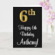 6e födelsedag ~ Elegant Luxurious Faux Guld Se nr. Kort